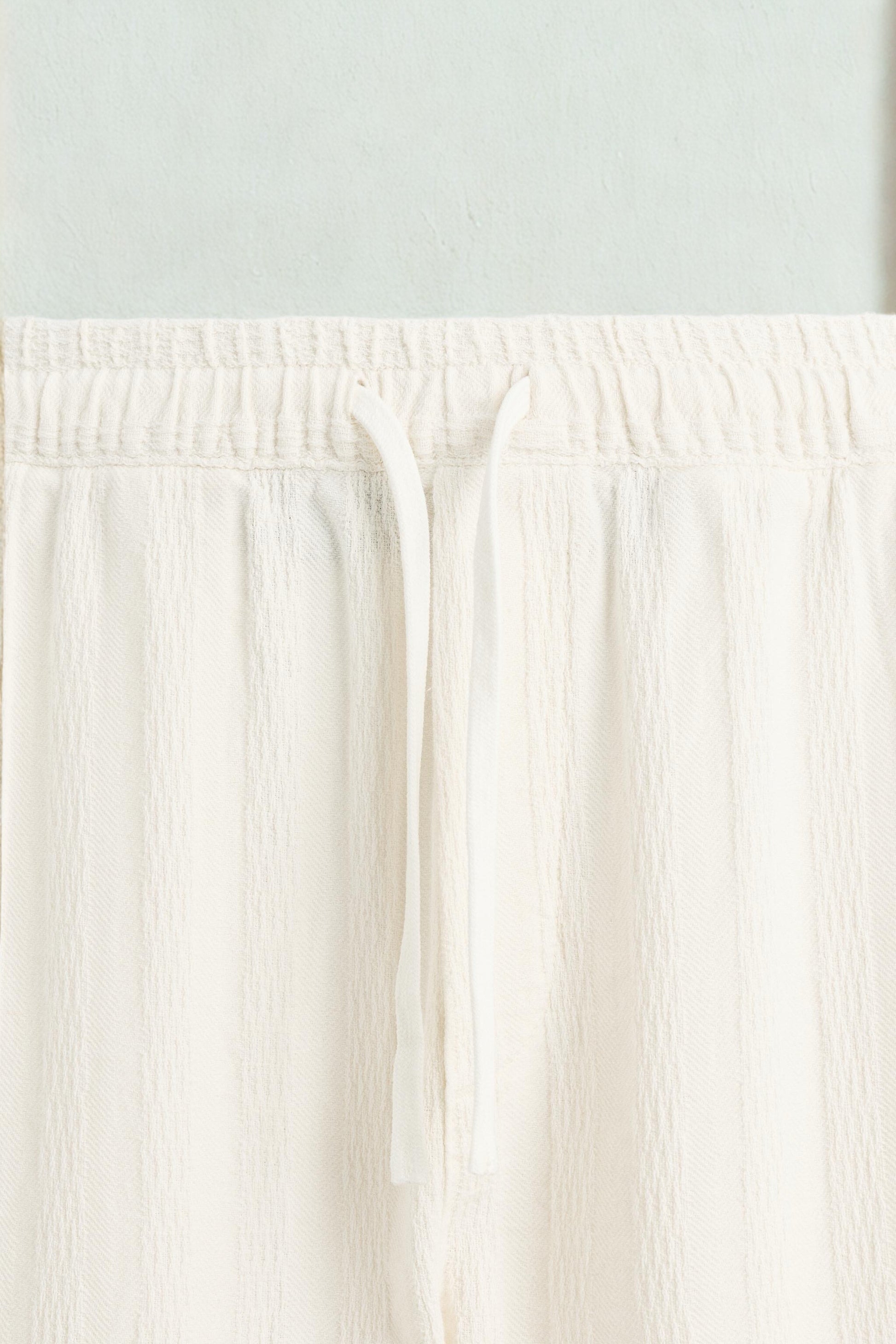Relaxed fit trousers made of cotton fabric. Elastic waistband adjustable with drawstring. Front pockets and patch pocket detail on the back. Washed effect.